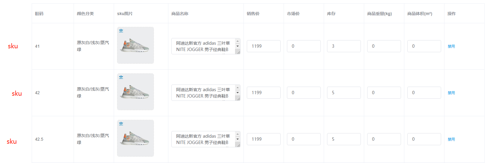 商城表设计